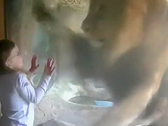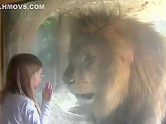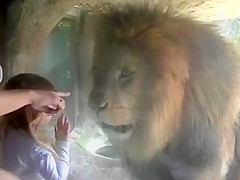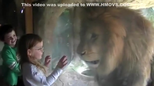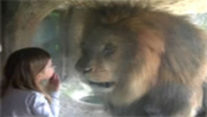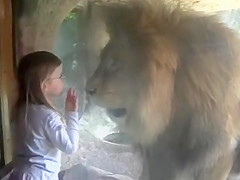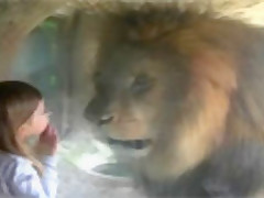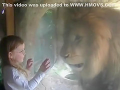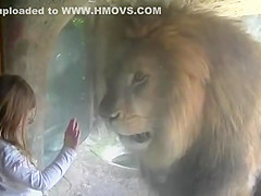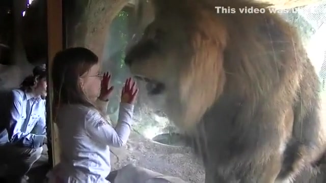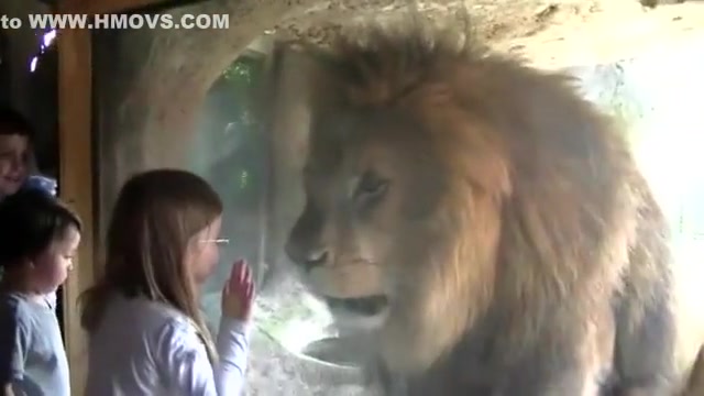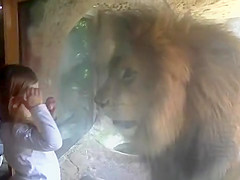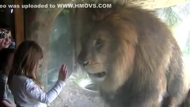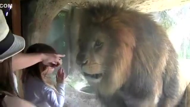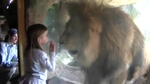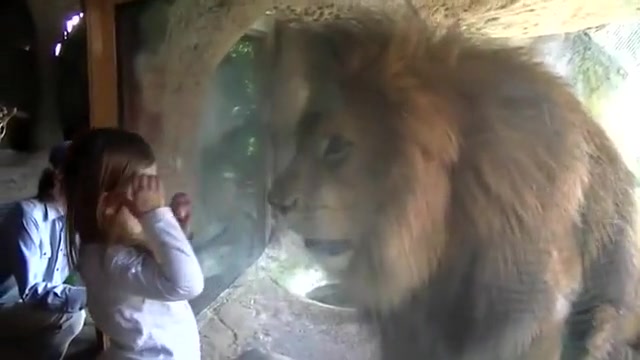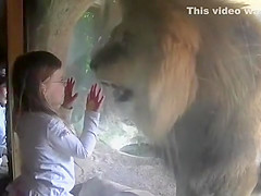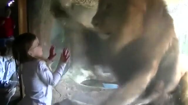 Thick glass is the only thing keeping this huge lion from swallowing that little girl whole!