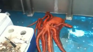 Huge Octopus Slips Through Tiny Hole In Boat