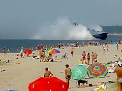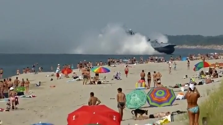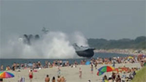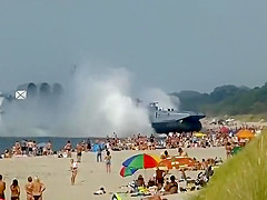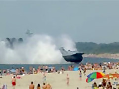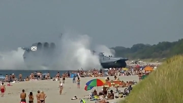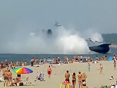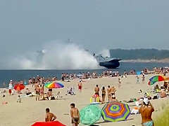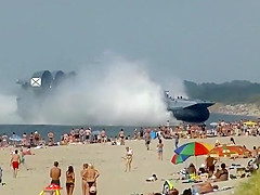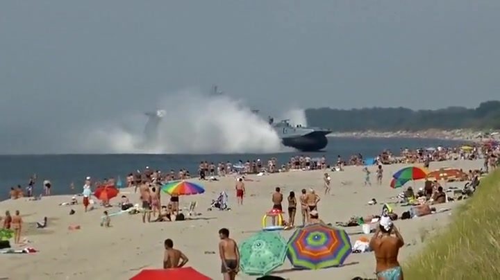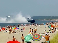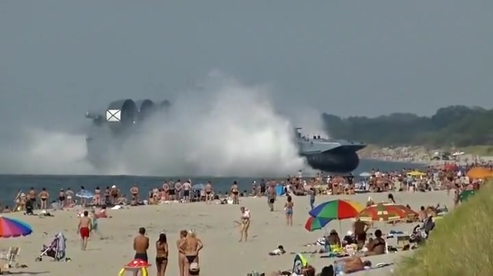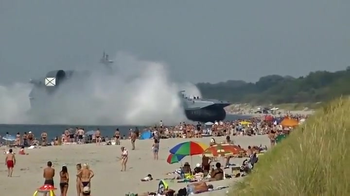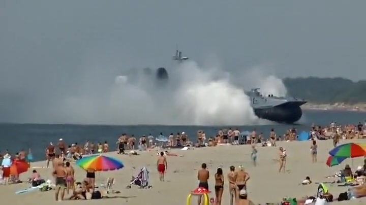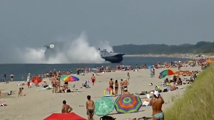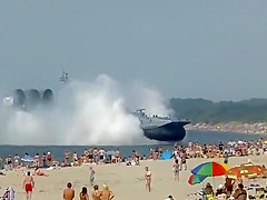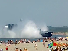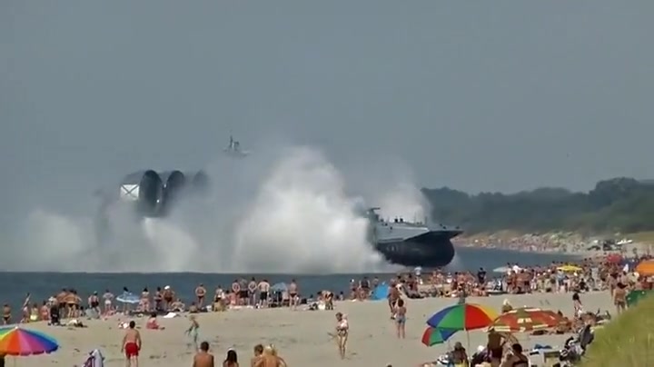 It's not every day you see a huge Russian navy hovercraft plow into your local beach. A very cool sight to see.