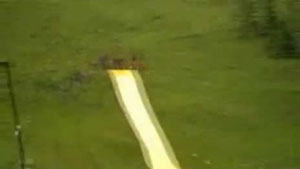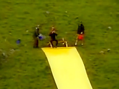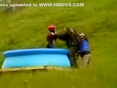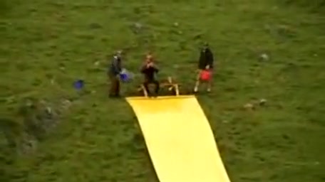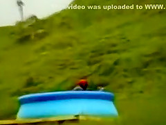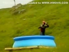 Idiots Riding a Tall Structure In The Back of a Pick...