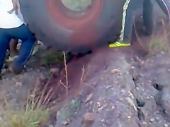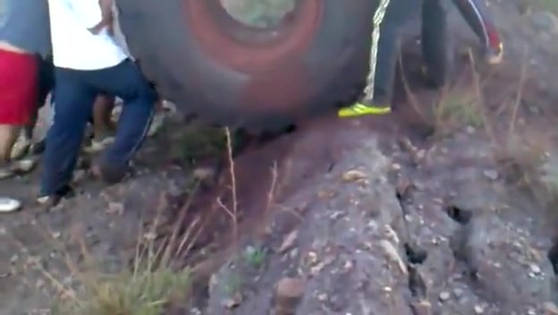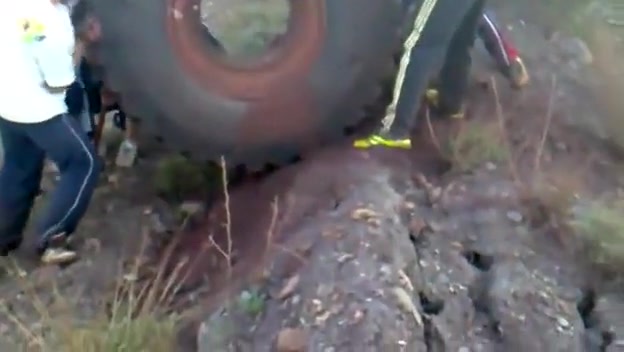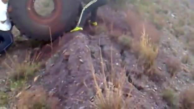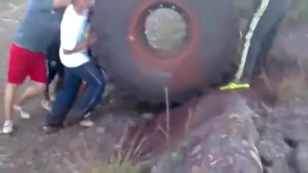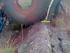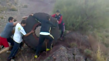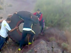 800lb Tractor Tire Rolled Down Mountain