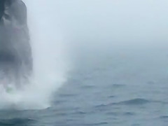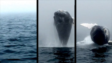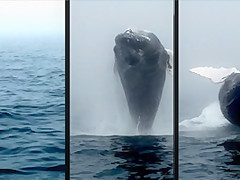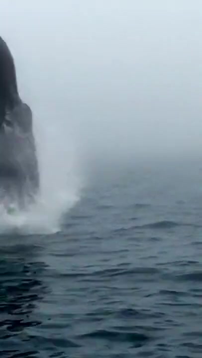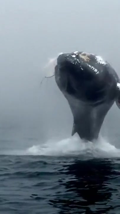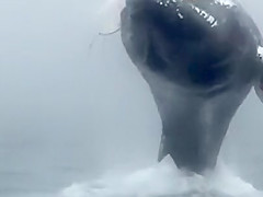 Spectators get quite the surprise when a humpback whale breaches the surface.