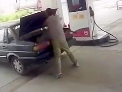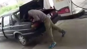 Husband Jams His Wife Into Trunk of a Car At The Gas Station
