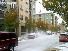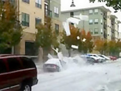 Ice Avalanche Crushes Cars