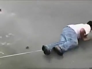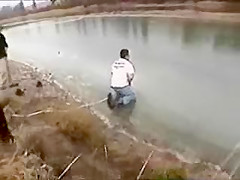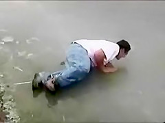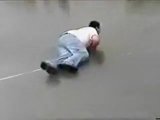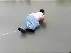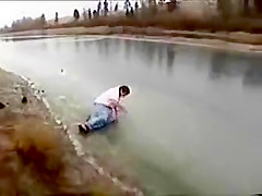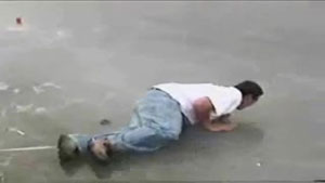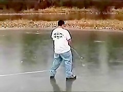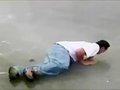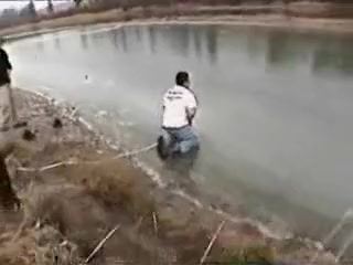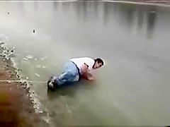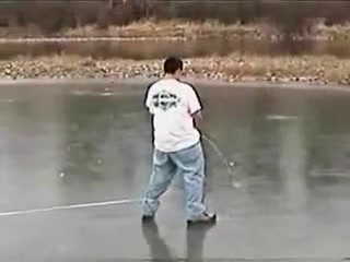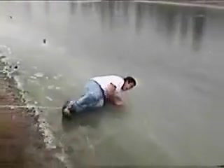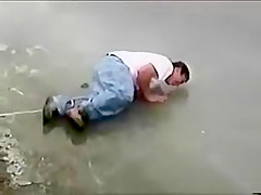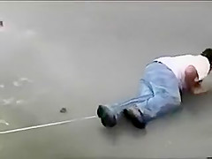 His buddies tied a rope around his foot and pulled on it while he took a piss on the ice.