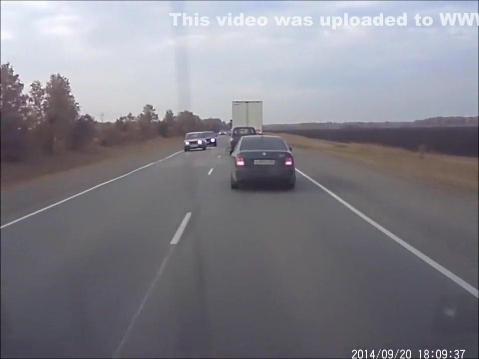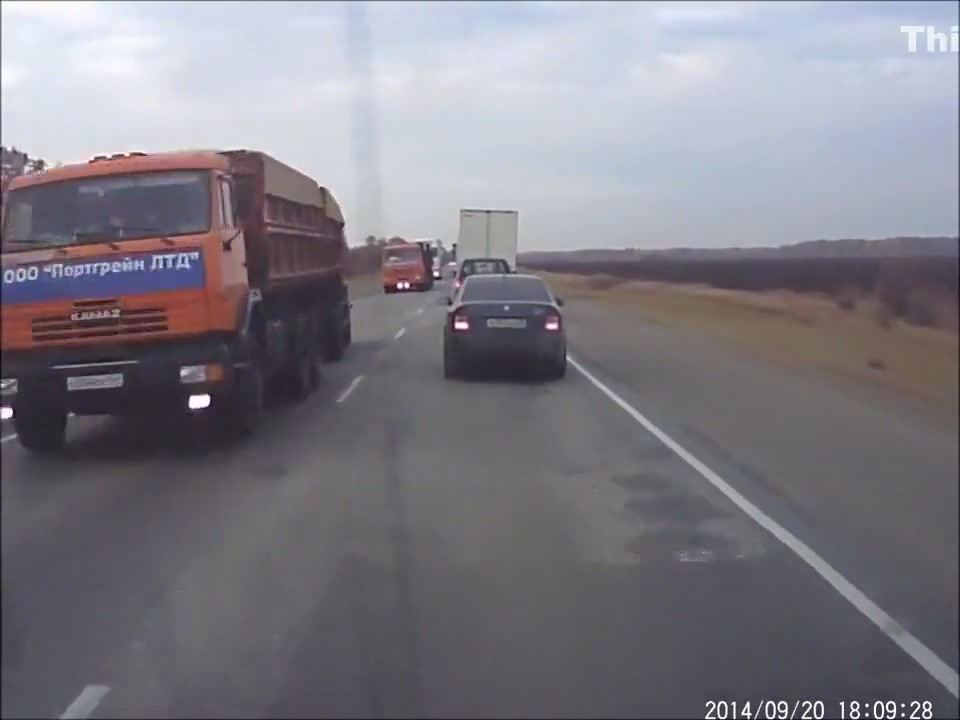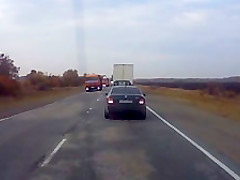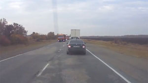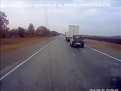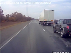 A scary crash occurs when an idiot driver attempts to pass 3 vehicles and winds up playing chicken with a tractor trailer truck.