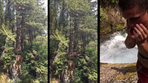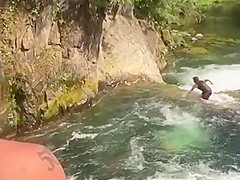 Idiot Tries To Jump From Tree Into Creek But The Branch Snaps