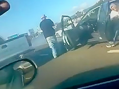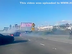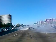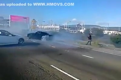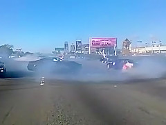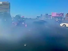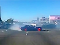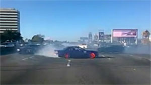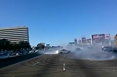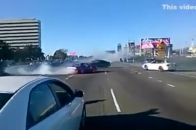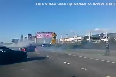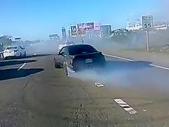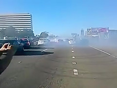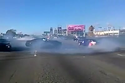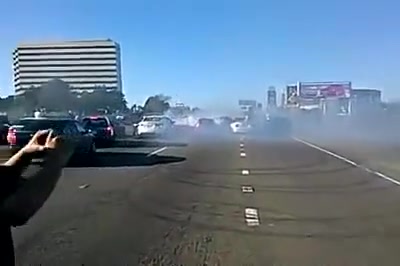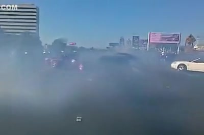 A gang of idiots thought it would be cool to hold up a whole highway of traffic to do some burnouts.