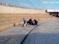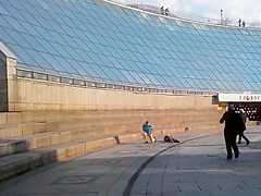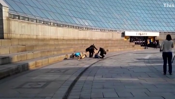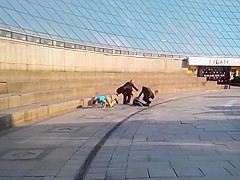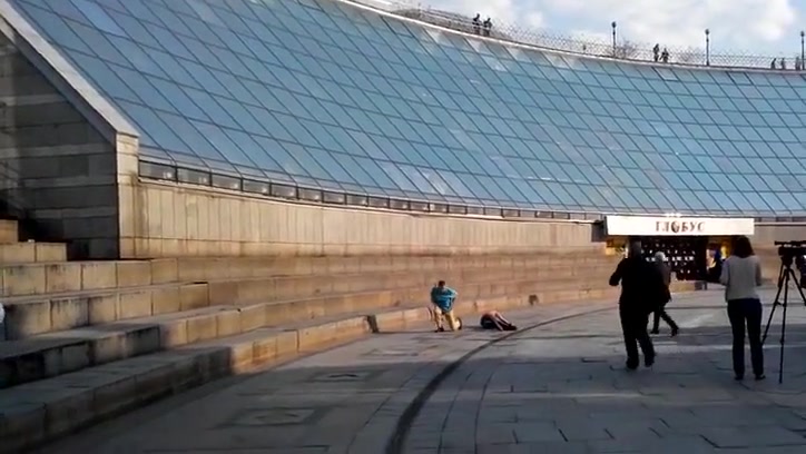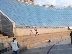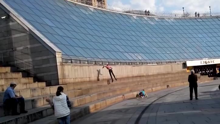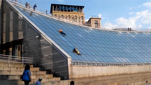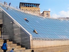 Idiots Sliding Down a Glass Structure Take a Hard Landing