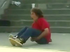 This kid's skateboard snaps in half on a botched stunt and tears open his taint...lol