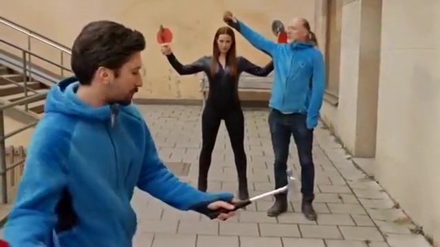 The same people that brought you the impossible ping pong trick are back with saw blades and a hammer.