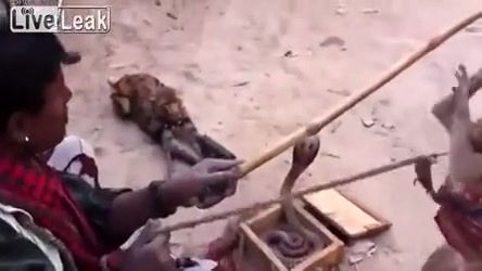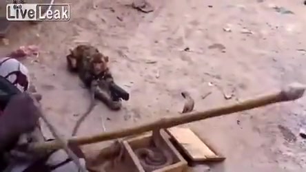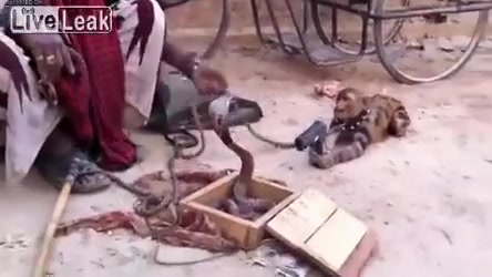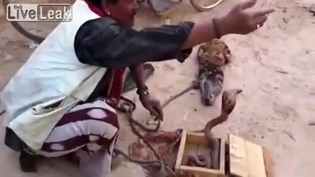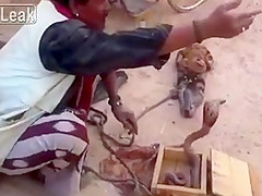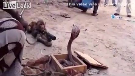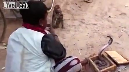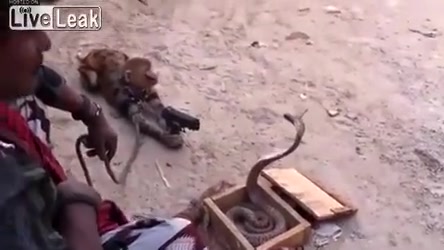 This street performer in India uses 2 monkeys and a cobra. One monkey points a gun at the cobra while the other one dances to hip hop. WTF!?