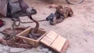 India Street Performer With 2 Monkeys and a Cobra WTF