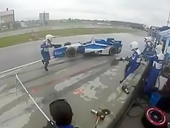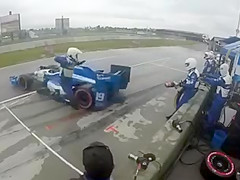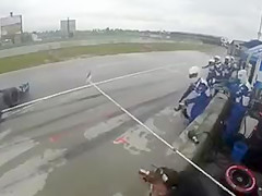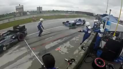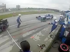 IndyCar Crew Member Gets Taken Out By Hydroplaning Racecar