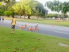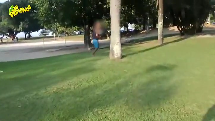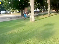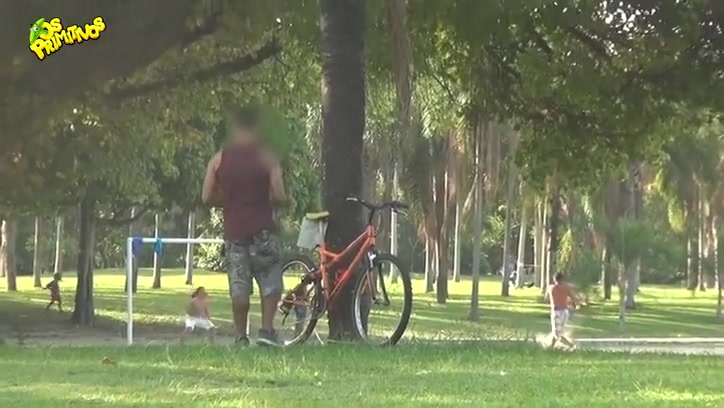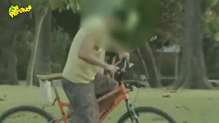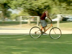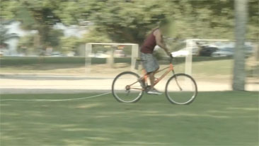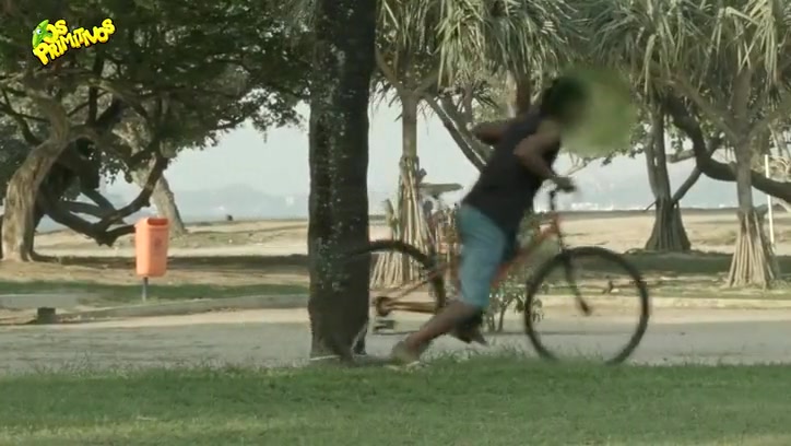 Watch thieves attempt to steal a bicycle that is tied to the tree. They get quite the surprise when they take off.