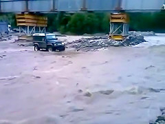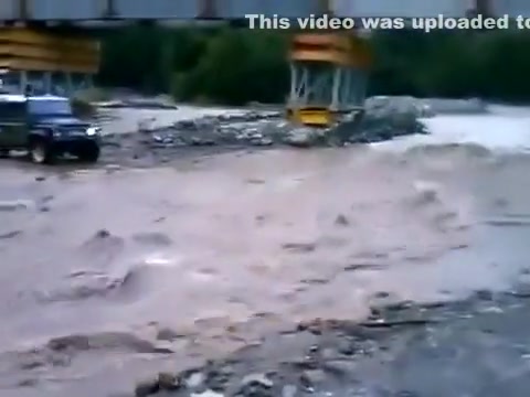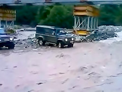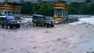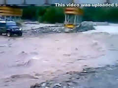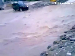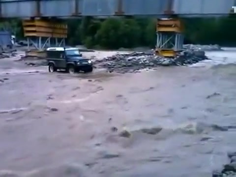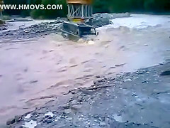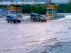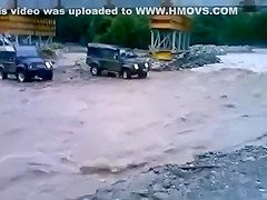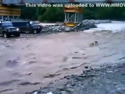 Jeep With Kids On Board Attempts To Cross a Raging River