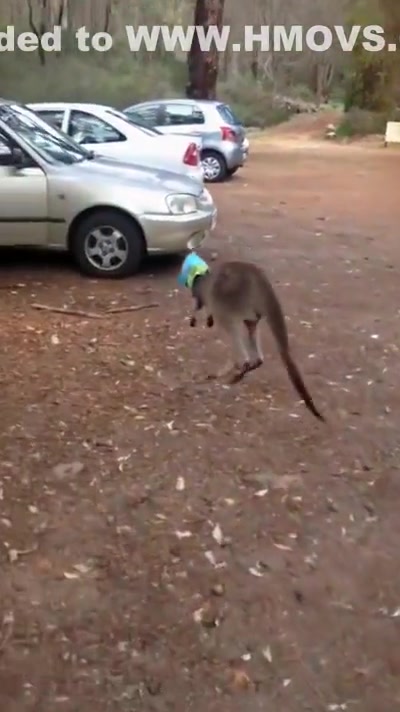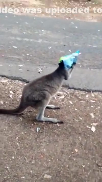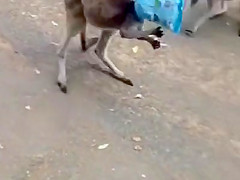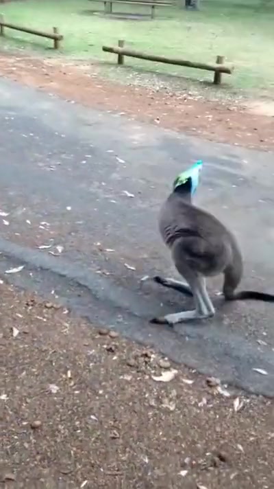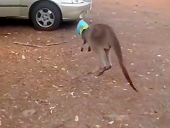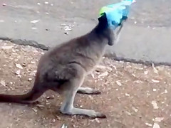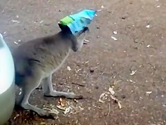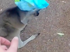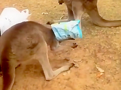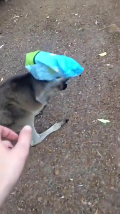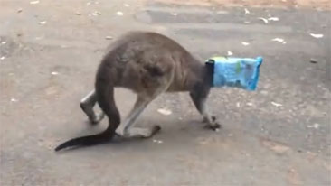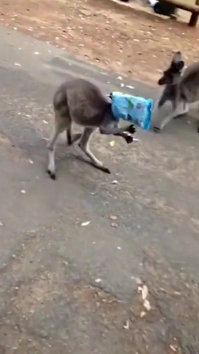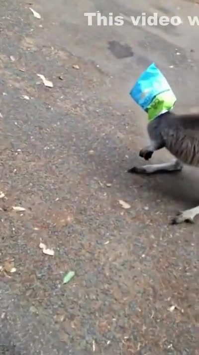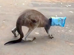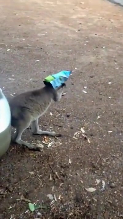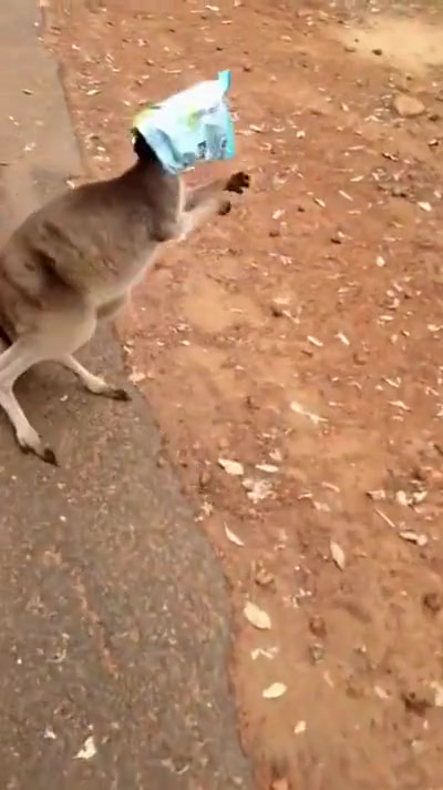 Kangaroo Gets a Chip Bag Stuck On His Head