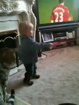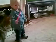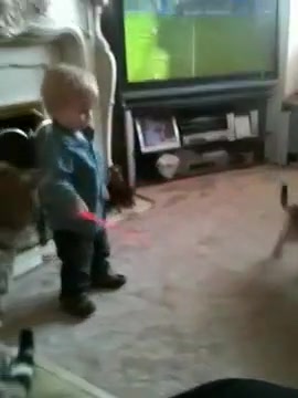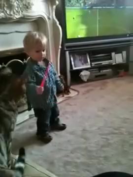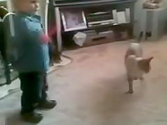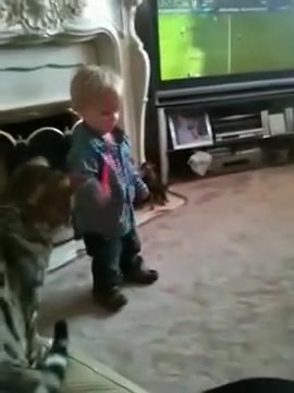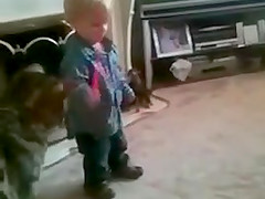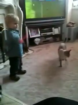 Boom, headshot...He came out of nowhere!!! Cat - 1, Little Kid - 0