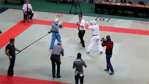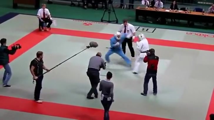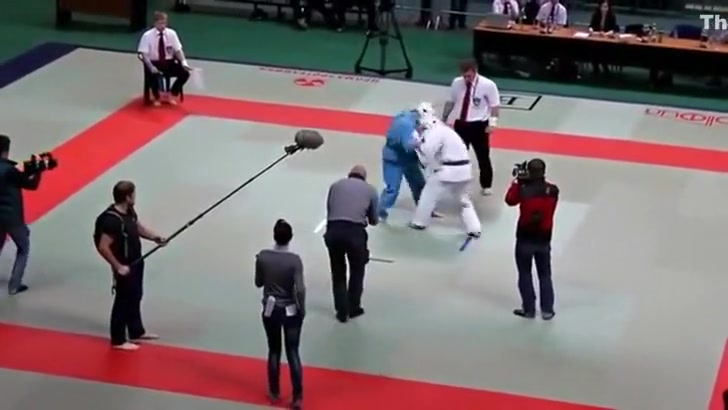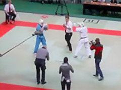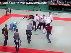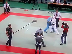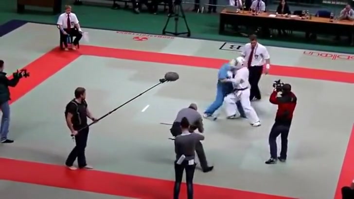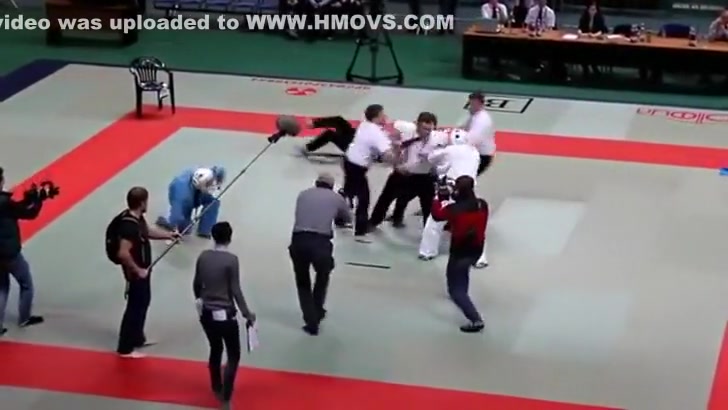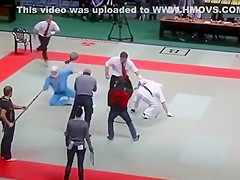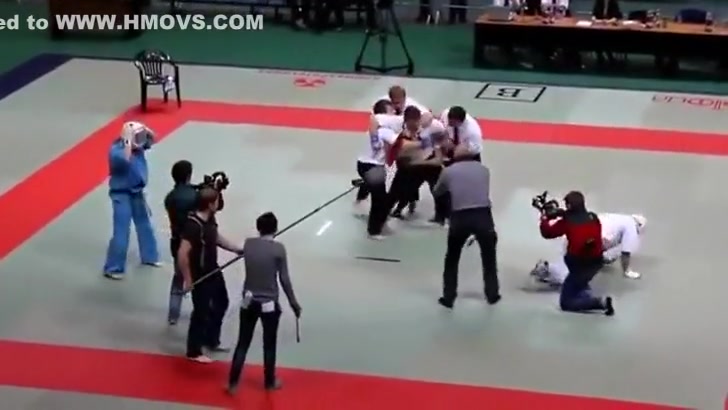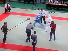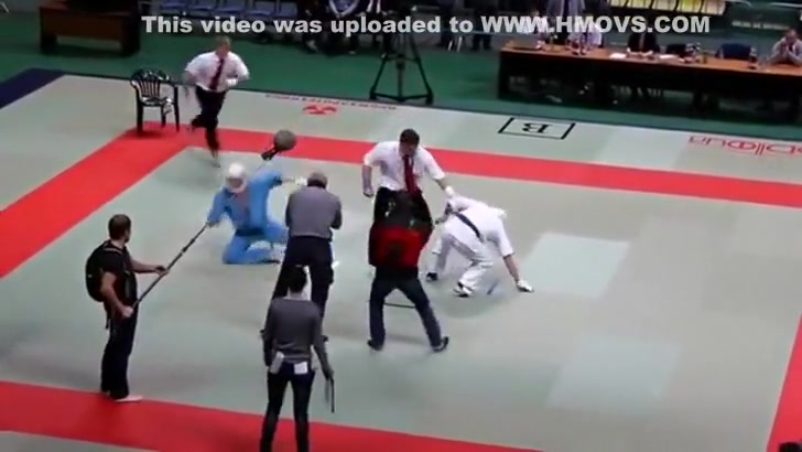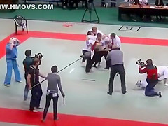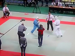 I'm not really sure what set off the referee but he goes apeshit and kicks both there asses.