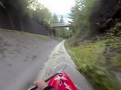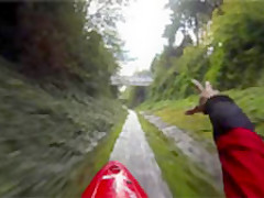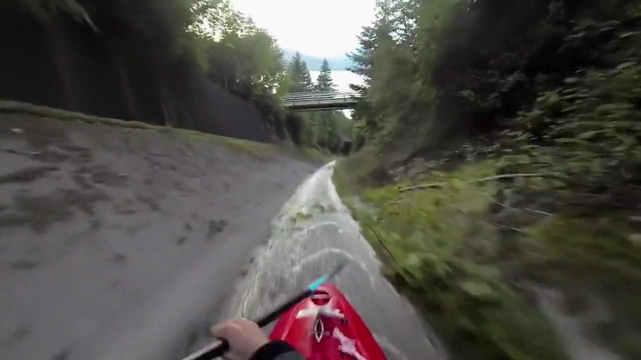 Kayaker Ben Marr rockets down a concrete drainage ditch into Lions Bay, British Columbia at 34 miles per hour!
