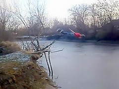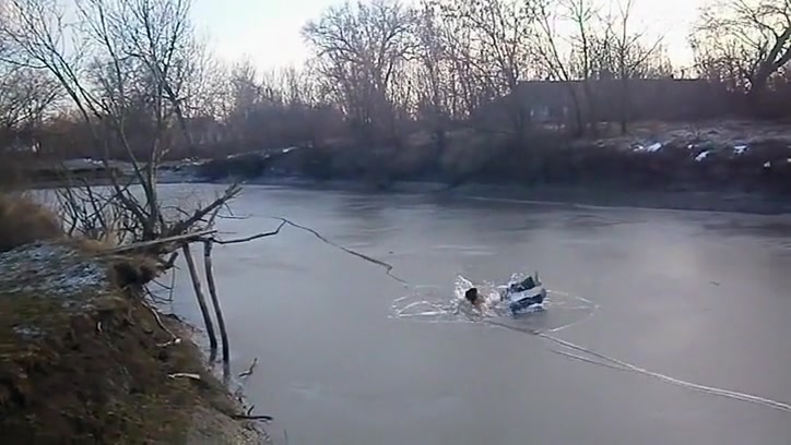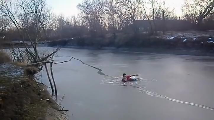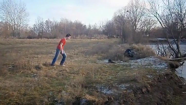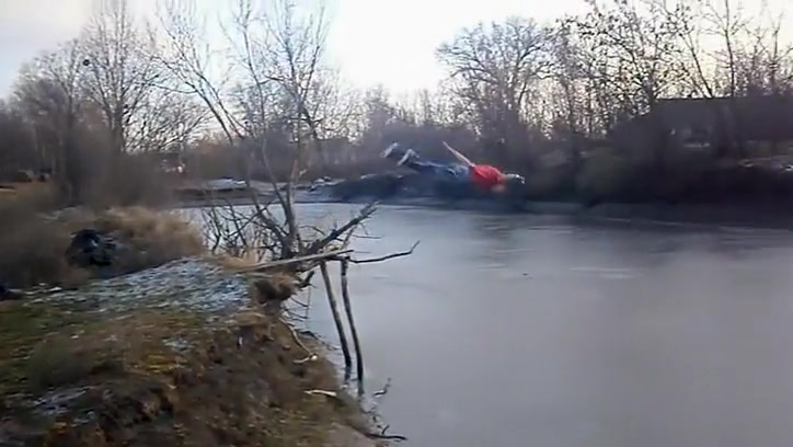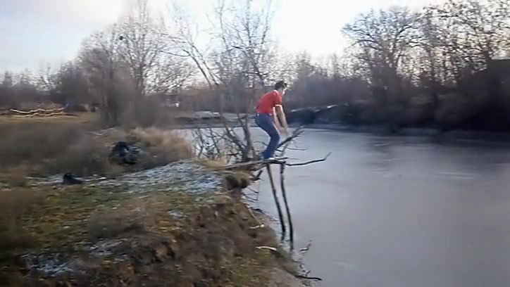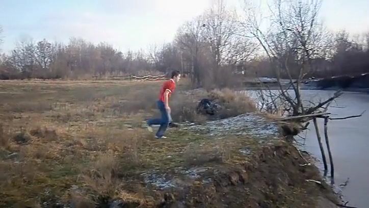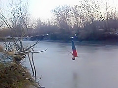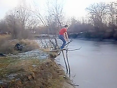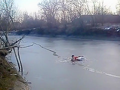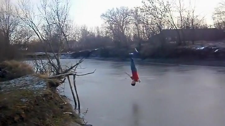 Kid Swan Dives Into a Frozen Pond
