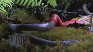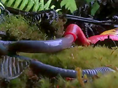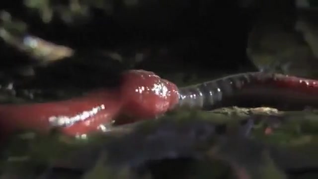 A killer leech swallows a giant earthworm whole. That thing looks like a monster.