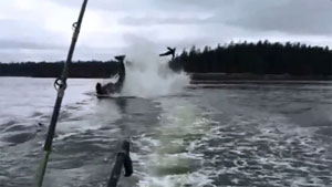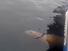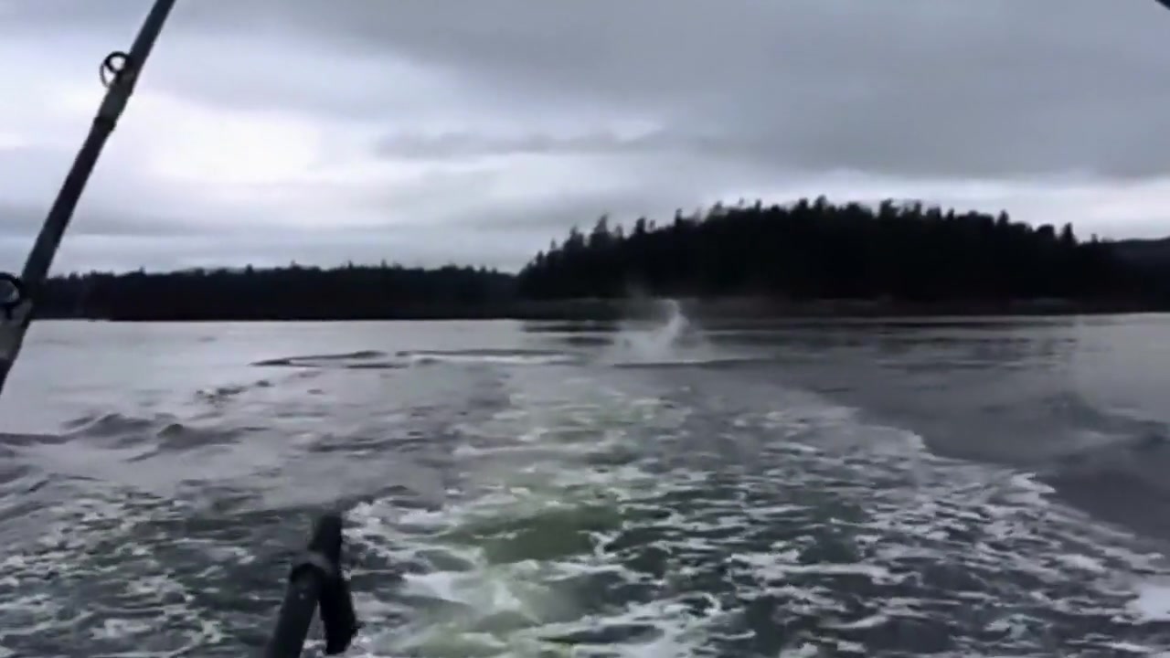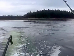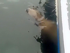 This morning a sea lion was hiding under our fishing boat because he was being stalked by a killer whale. When we decided to leave the area the whale attacked the sea lion and tossed him 20 feet into the air!