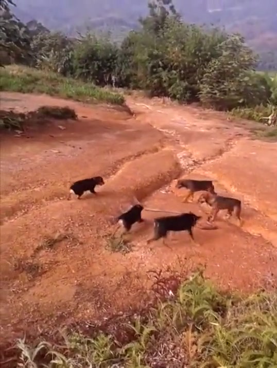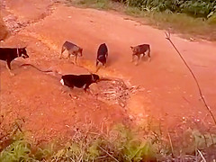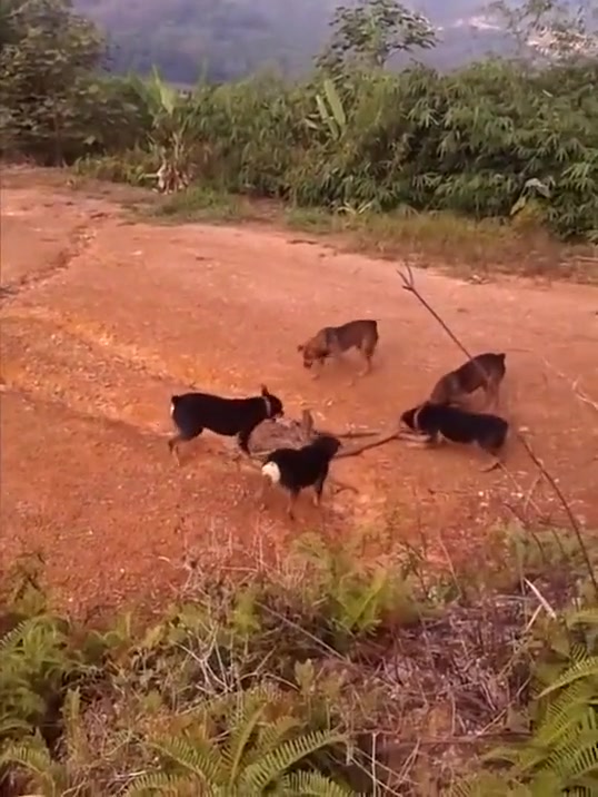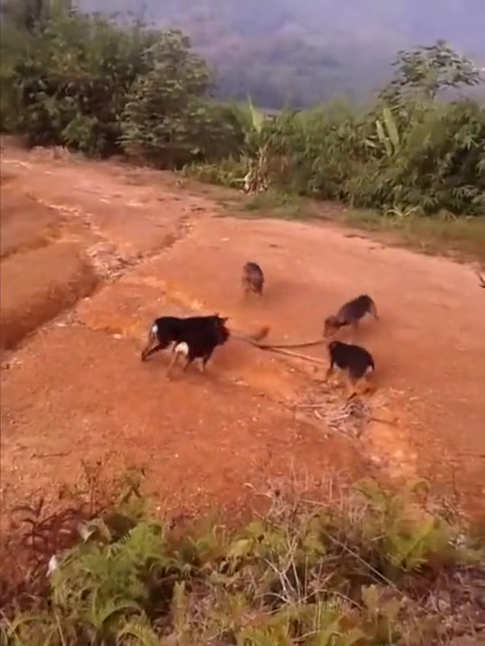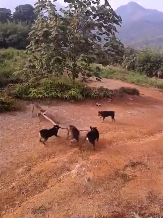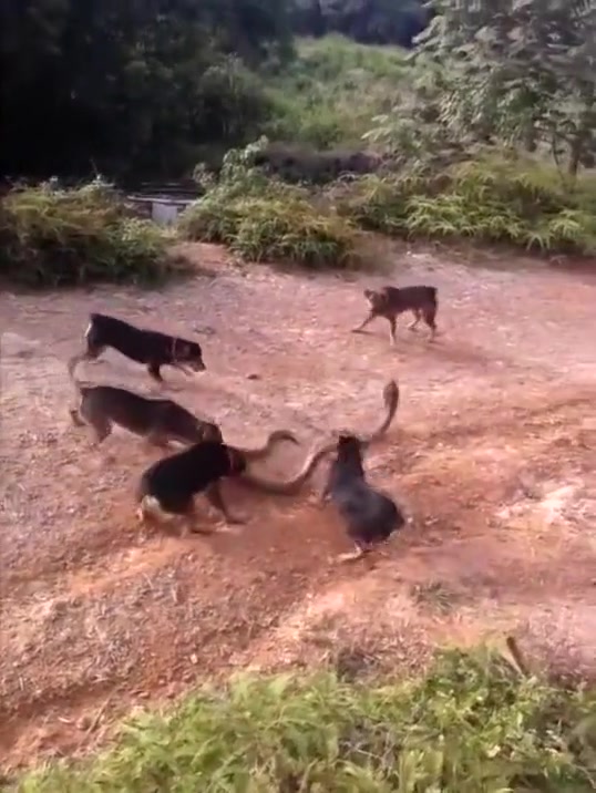 A King Cobra might have met his match against 5 angry dogs.