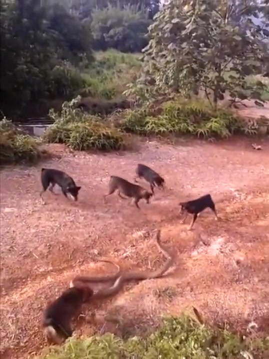 King Cobra vs 5 Dogs