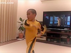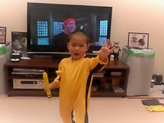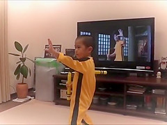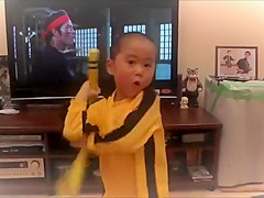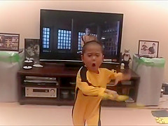 Little Kid Imitates Bruce Lee's Nunchaku Scene
