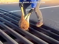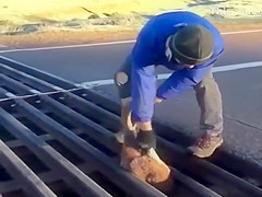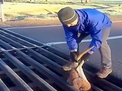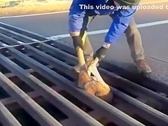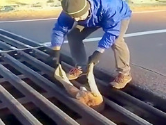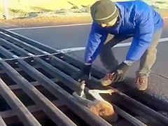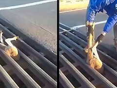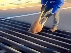 Man Rescues Kangaroo Stuck Upside Down In a Road Grate