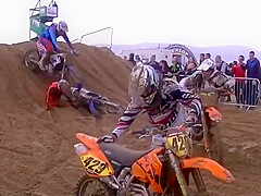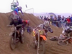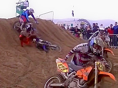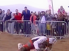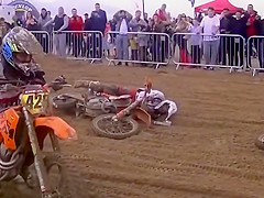 Motocross Biker Knocked Out When Another Rider Lands On His Head
