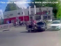 Motorcyclist Crashes And Lands On Top of Two Cars