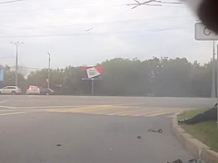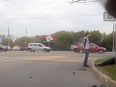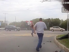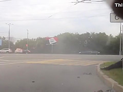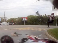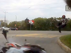 A dash cam caught a violent motorcycle accident after the driver lost control.