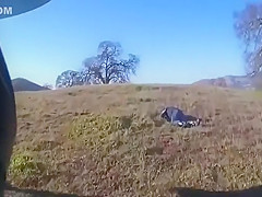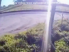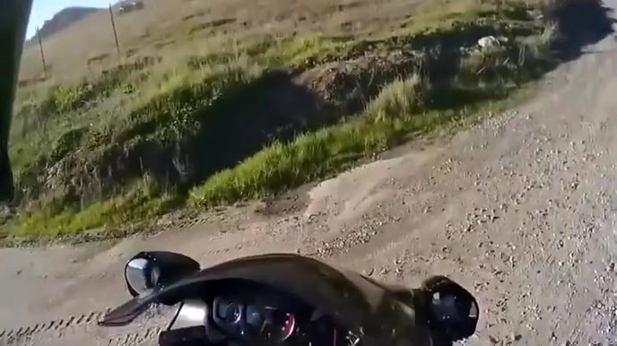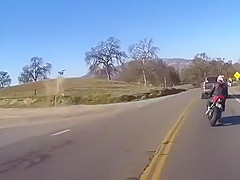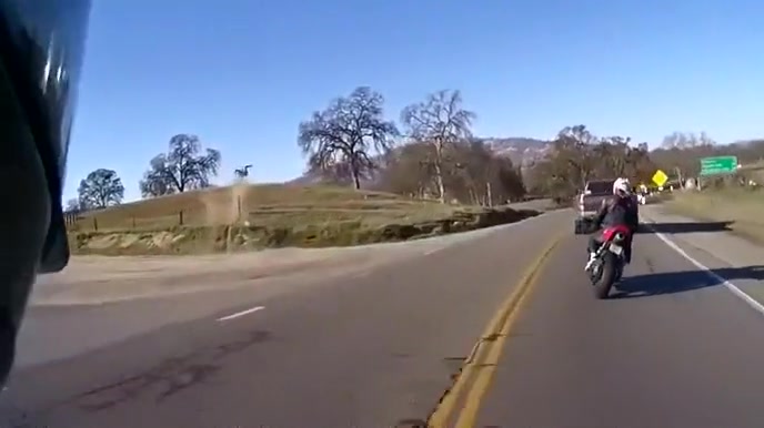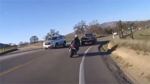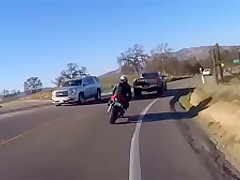 Watch a motorcyclist evade an oncoming car and go airborne!