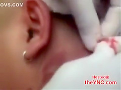 Here is a gross neck infection. Look at the junk that comes out of his neck!