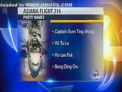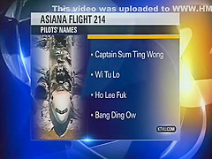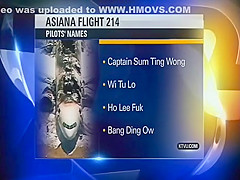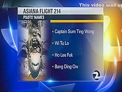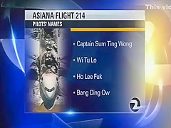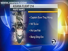 A news anchor was tricked into reading fake names of the Asiana pilots. The names were: Captain Sum Ting Wong, Wi To Lu, Ho Lee Fuk, and Bang Ding Ow. She actually read these on air.