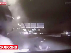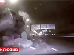 There were no road signs on this Russian highway telling motorists to merge over for construction. This was the result.