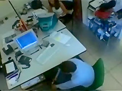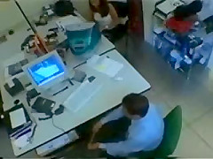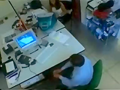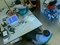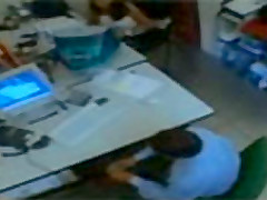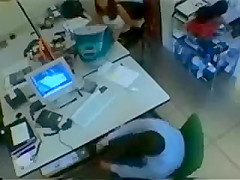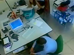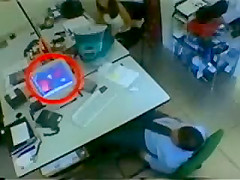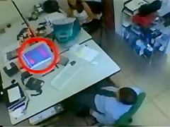 He ties a webcam to his foot and tries to position it so he can look up his co-workers skirt.