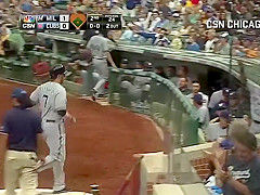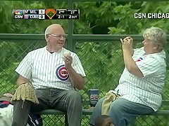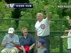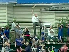 An old guy makes a nice homerun catch. He then pulls a switcheroo and throws back a different baseball onto the field.