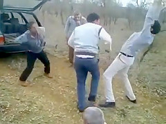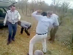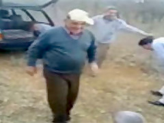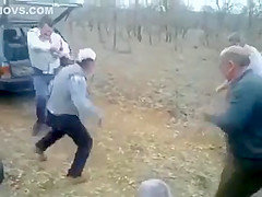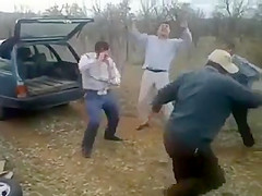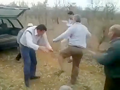 These old men look like they are ready to have a heart attack after a dance battle out in the woods.
