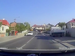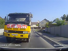 Out of Control Cement Truck Flies Around The Corner