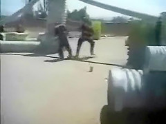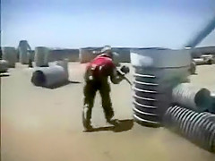 This guy gets pissed when he is sneeked up on and shot in the back with paintballs. They end up shooting each other at point blank range and then throw fists.