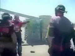 Guy Talking To Cop Knocked Out By Loose Truck Crane