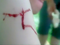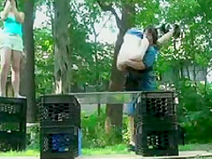 A wannabe extreme wrestler almost slices open his ball sack.