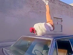Three amazing athletes do parkour and freerunning stunts with a moving car...but who's driving?