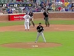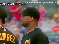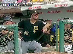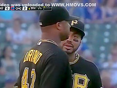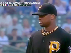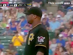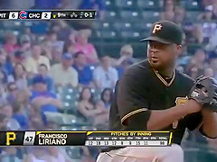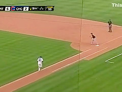 Baseball player Francisco Liriano with a crazy no-look in between the legs catch.