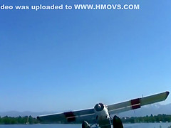 A pontoon plane crashes during take off and almost kills the person video taping it.
