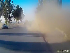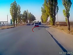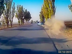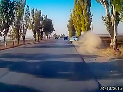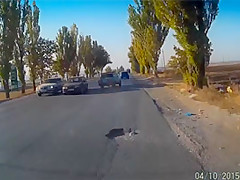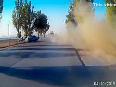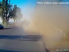 A dash cam catches a bad accident on cam caused by a large pot hole.