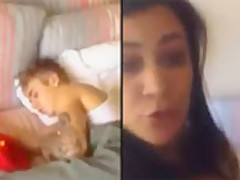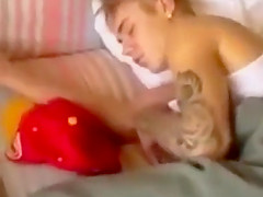 A Brazilian prostitute takes a selfie while Justin Bieber is sleeping with his hat in bed...